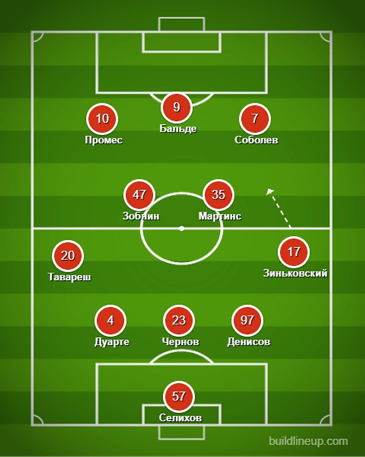 В Питере Абаскаль подготовил 5-2-3. Ключевой фигурой стал Зиньковский. В обороне он – крайний защитник; при начале атак питерцев шёл в среднюю линию, чтобы встретить Клаудиньо. Этот манёвр тормозил атаку питерцев, хотя «Спартак» практически не отходил в низкий блок и не раскрывался. Тройка форвардов осложняла зенитовцам выход из обороны и сама создавала опасность.