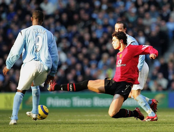Первую серьезную дисквалификацию Роналду заработал в январе 2006-го еще в составе «МЮ». Во втором тайме дерби с «Ман Сити» («Юнайтед» проиграл 1:3) португалец далеко отпустил от себя мяч и полетел отбирать в подкате. В итоге вместо мяча попал по Энди Коулу.