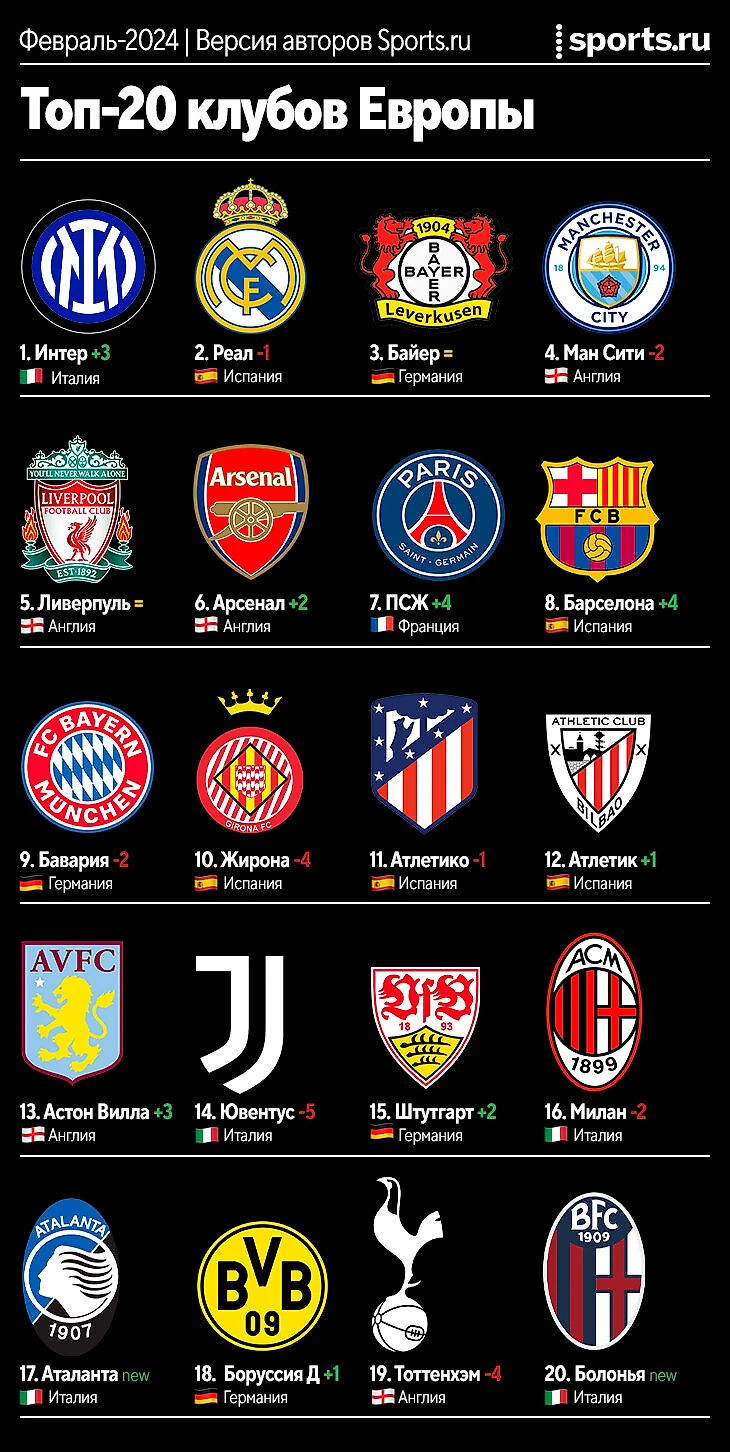 Всем привет! Это рейтинг лучших клубов мира по итогам февраля. Его составляют футбольные авторы Sports.ru на основе субъективных наблюдений. Несмотря на соревновательную часть (распределение команд по местам), главная цель другая – рассказывать о состоянии топ-клубов и подсвечивать интересные проекты. Например, в этой версии появилась «Болонья»! Отличный повод посмотреть ее матч на выходных.
