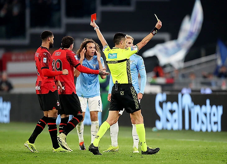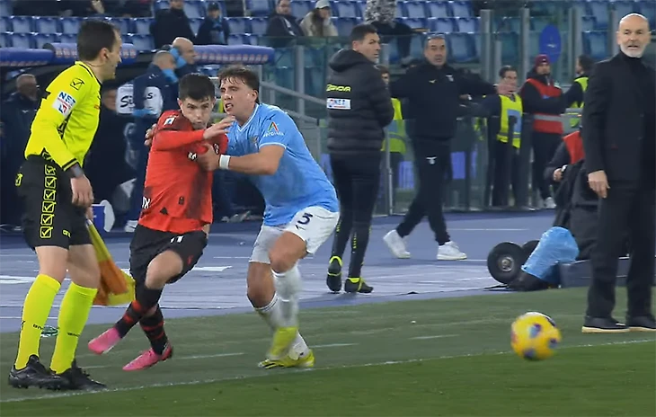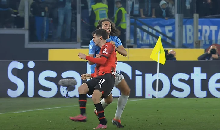 Под самый конец «Милан» все-таки повел, благодаря голу форварда Ноа Окафора. «Лацио» полез вперед, много фолил. И на 95-й минуте нервы не выдержали у Адама Марушича: он слега подтолкнул Леау, судья Марко Ди Белло свистнул фол.