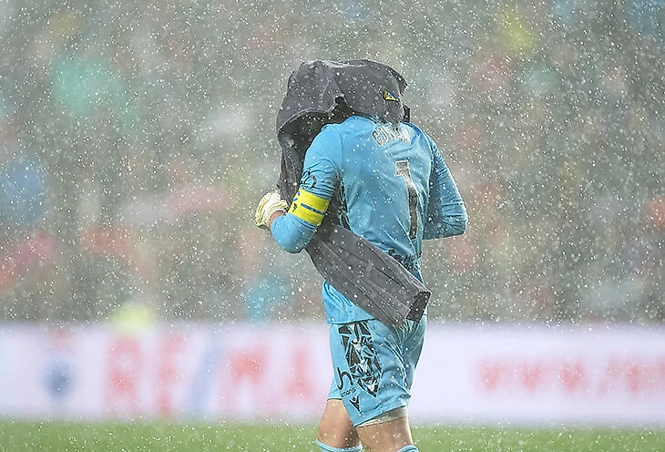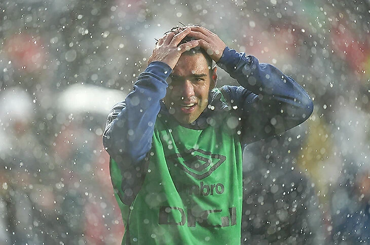 На 61-й минуте стало настолько снежно и ветрено, что главный арбитр матча Альберола Рохас отправил игроков в раздевалки.