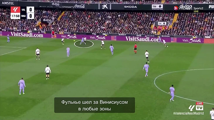 Матч «Валенсия» – «Реал Мадрид» (2:2) запомнился скандальным свистком об окончании матча в момент гола, но до этого был хороший план сдерживания от Рубена Барахи (особенно в первом тайме) и поиск ответов от «Реала». Перформанс Винисиуса олицетворяет этот рисунок.