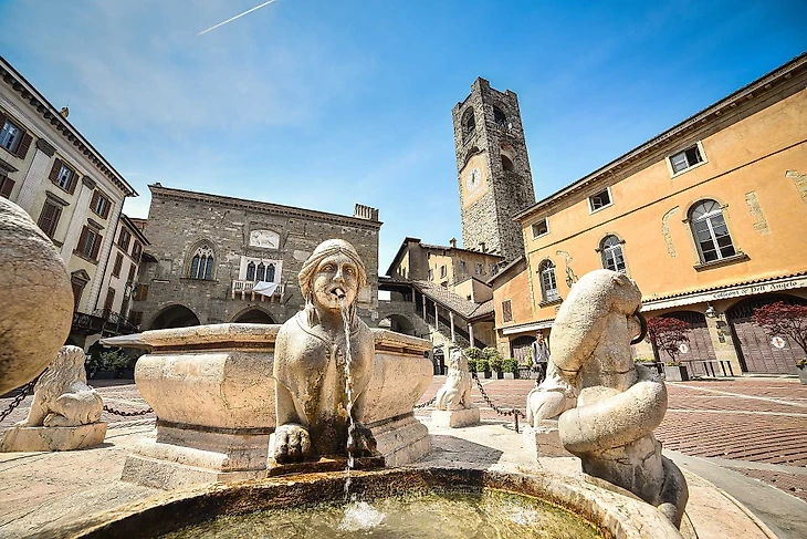 Площадь Пьяцца Веккья на протяжении веков была местом концентрации политической силы Бергамо, а сегодня это место, где встречаются и проводят свободное время. На площадь выходят своими фасадами великолепные и величественные здания, выстроенные в абсолютной гармонии согласно законам геометрии. Даже известный архитектор Ле Корбюзье говорил, что «нельзя больше тронуть и камешек, иначе это будет преступлением».
