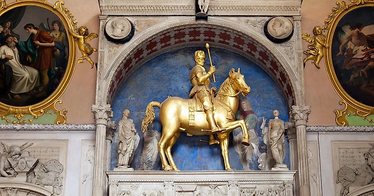 Позолоченная статуя полководца Бартоломео Коллеони на коне
