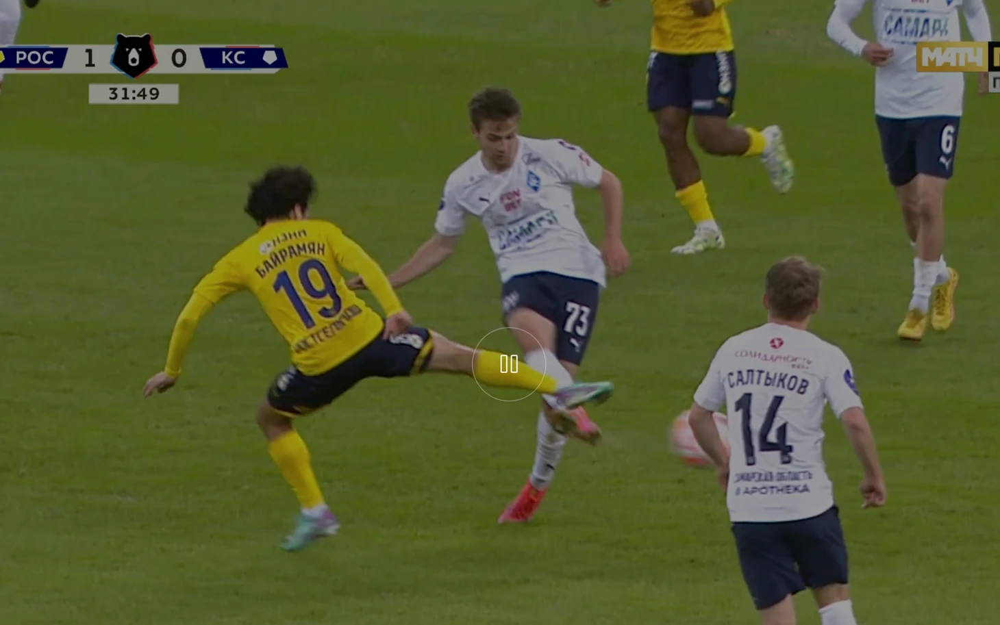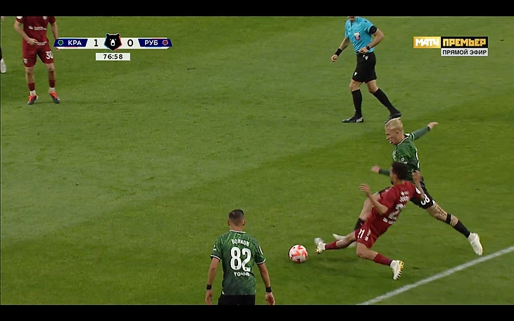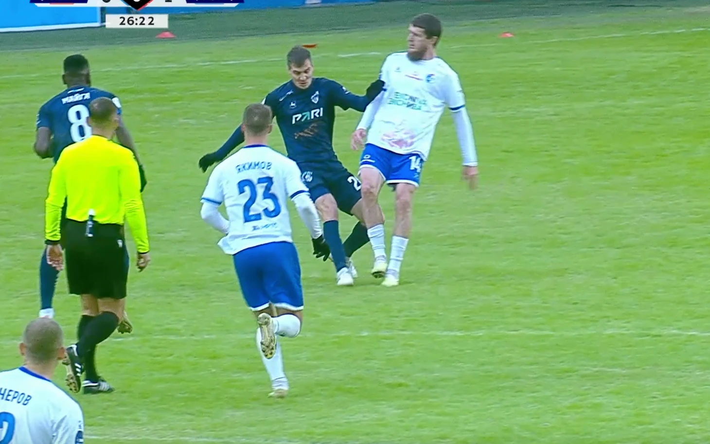31:20 Владислав Шитов (ФК Крылья Советов) получает на себя внимание из-за удара в область коленного сустава, но не травма не критична, проложил игру
