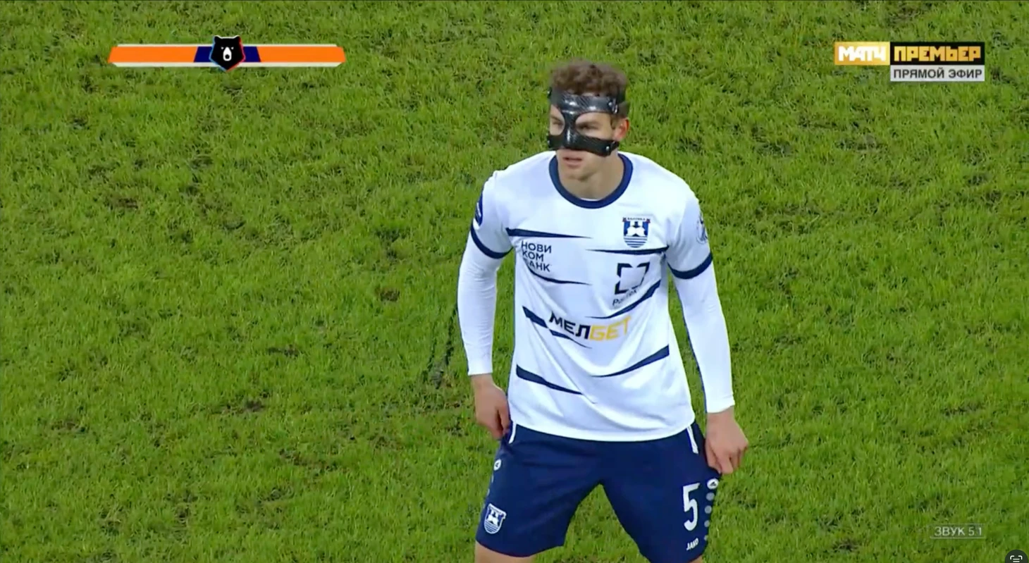 Вместо него на поле вышел Александр Осипов в брутальной маске, такая необходима для защиты хрящей носа, видимо до этого Александр получил травму на сборах