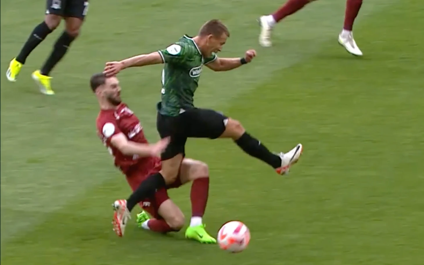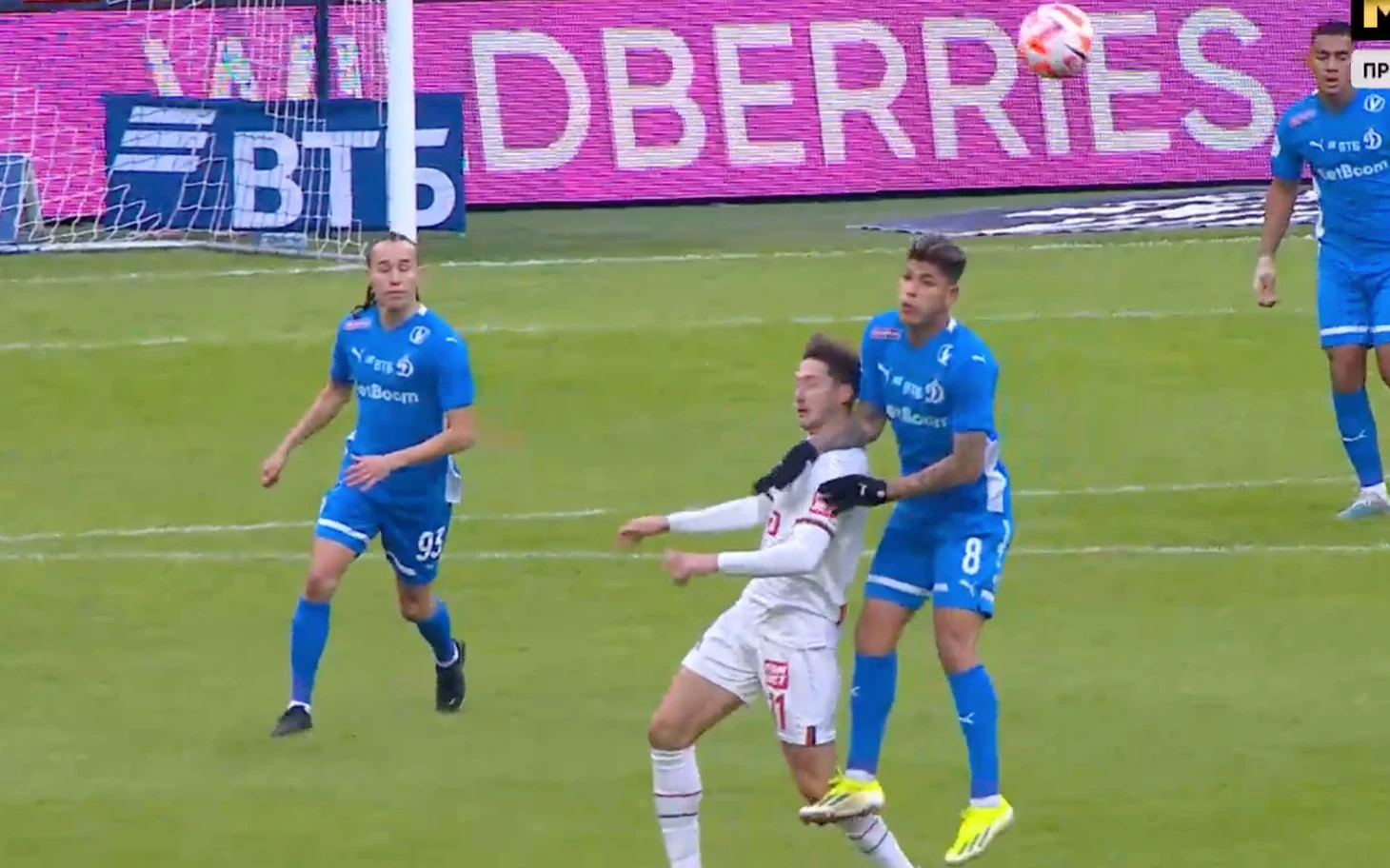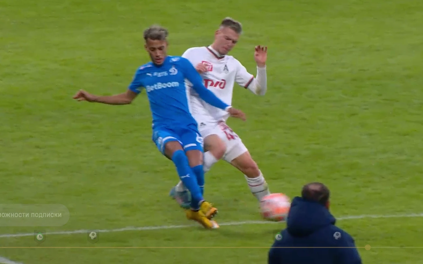 28:21 Жоао Бителло (Динамо) получает удар, контакт был, хоть и не очевидный с первого взгляда с трибуны выглядело хуже