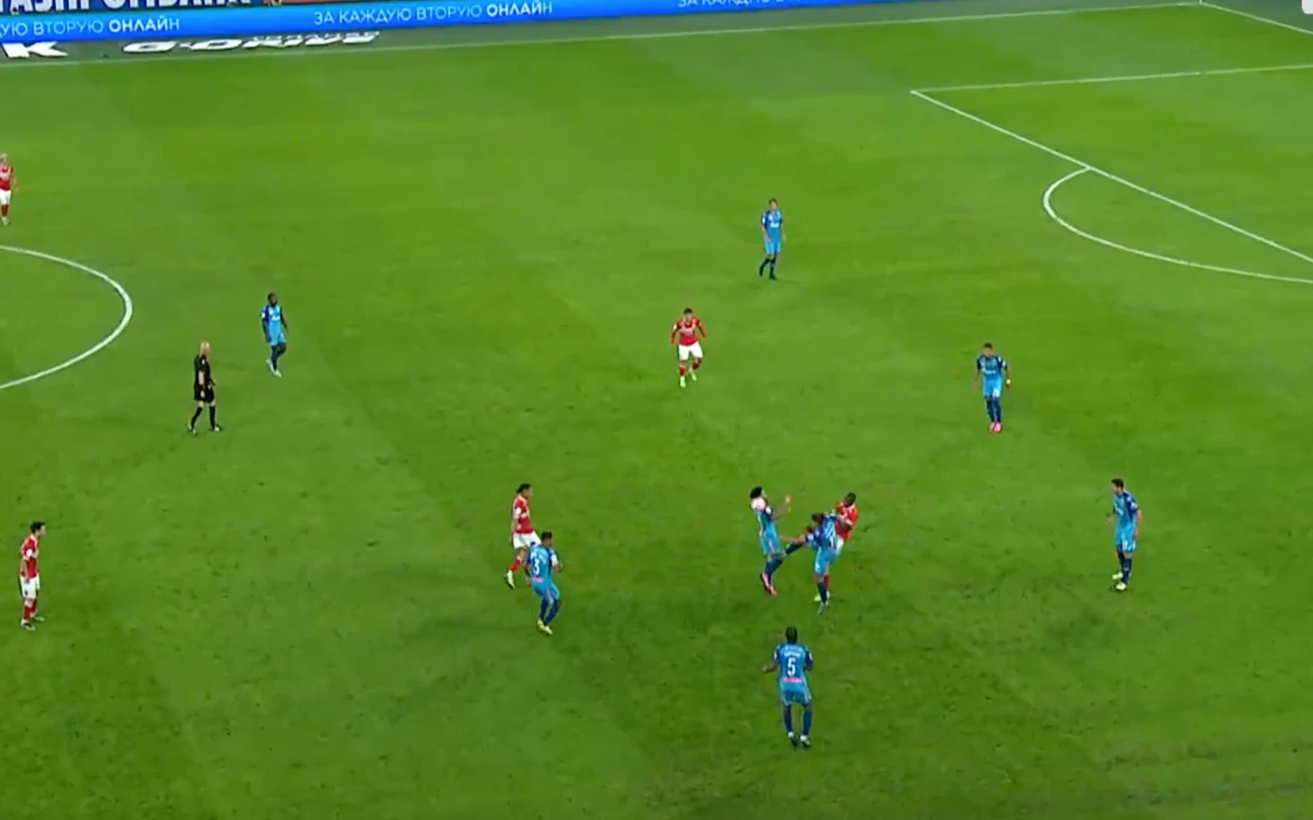 22:40 Срджан Бабич (Спартак) получает удар от своего вратаря, Максименко ударил в ребро, сбилось дыхание в таких случая важно в дальнейшем наблюдать за футболистов, возможен перелом, но к счастью все обошлось и игрок продолжил матч