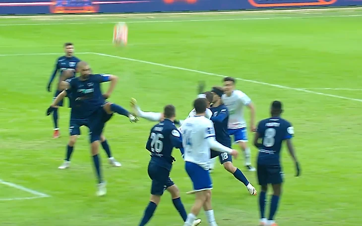 40:10 Фернандо Костанца (Крылья Советов) получает удар в лицо в результате которого мы видим кровь на лице, Голенков возмущался, но все же контактная игра была, недовольство Валерия Карпина, но на повторе все видно.