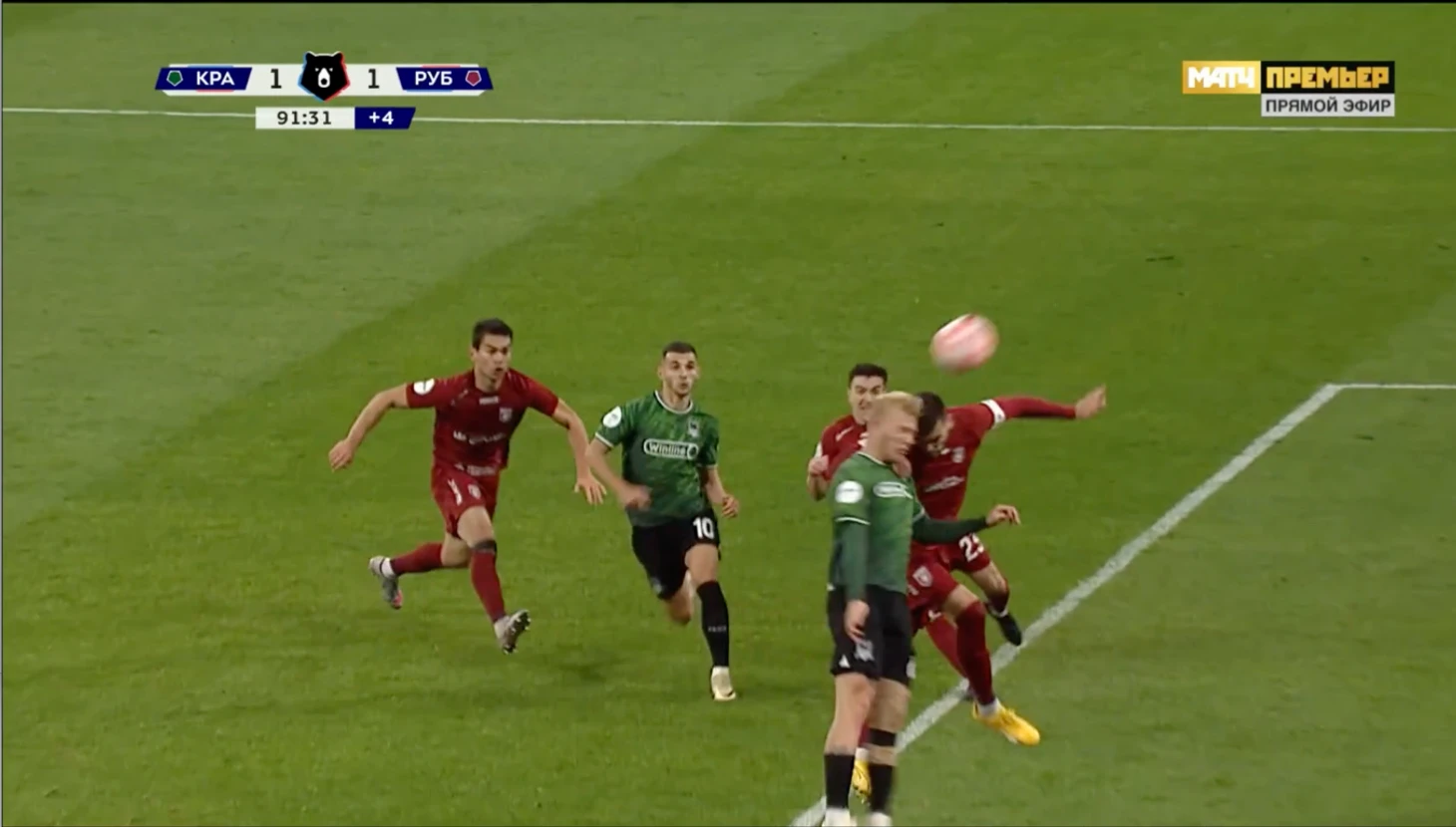 91:39 Никита Кривцов (Краснодар) столкнулся с Игор Вуячич (Рубин), в результате медицинские бригады оказывают помощь двум футболистам на предмет возможного сотрясения головного мозга