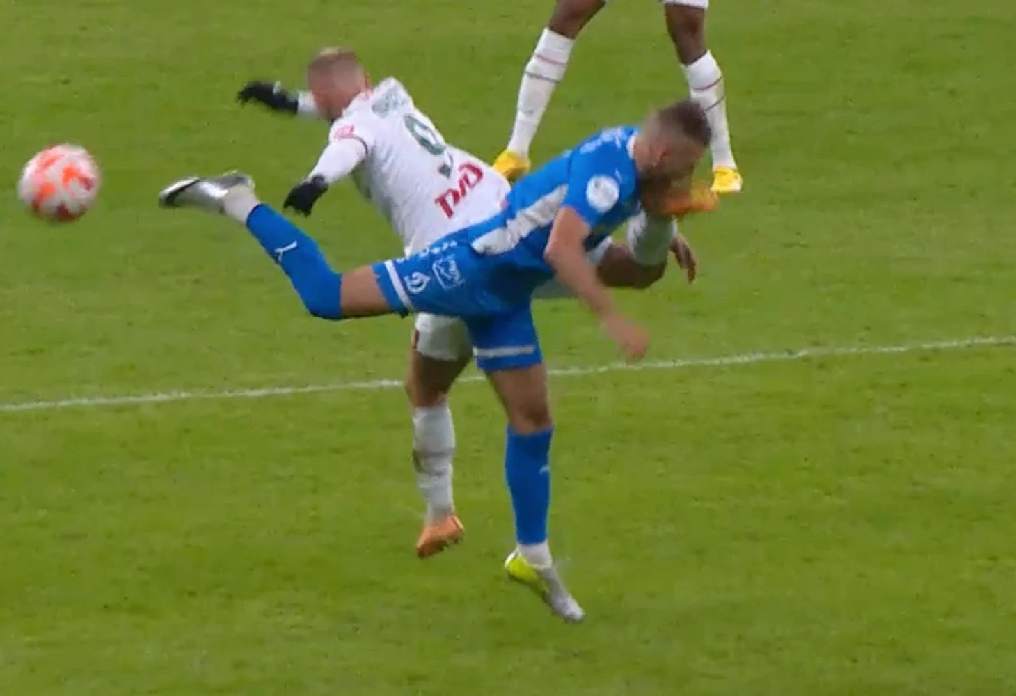 07:05 Антон Миранчук (Локомотив) получает удар в Челюсть, но все не критично, продолжает играть