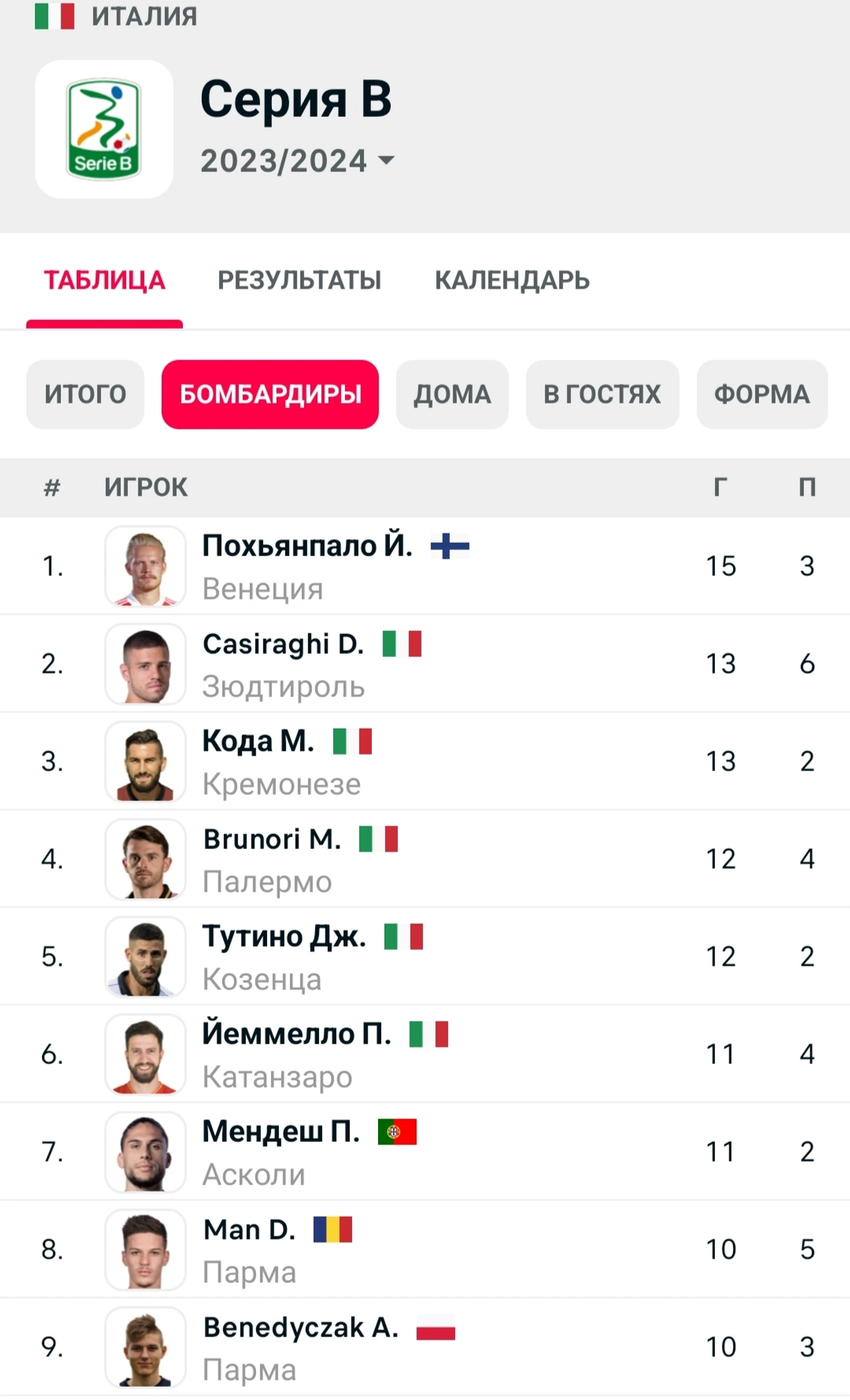 Финский форвард «Венеции» нашел себя в Серии В и лидирует в гонке бомбардиров, остальные участники на вашем экране.