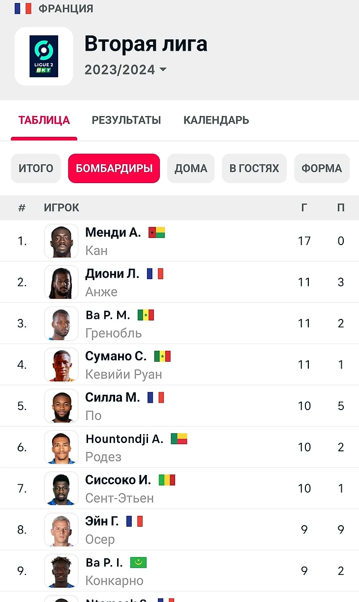 Менди уверенно лидирует в списке бомбардиров, возможно, пойдёт на повышение в более сильный клуб Лиги 1.