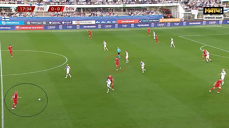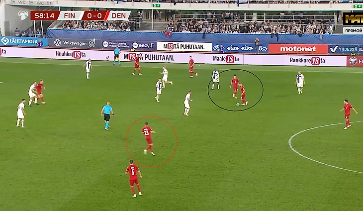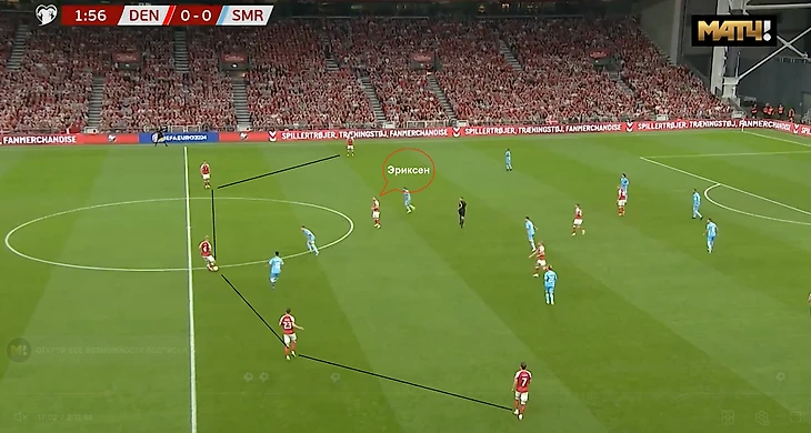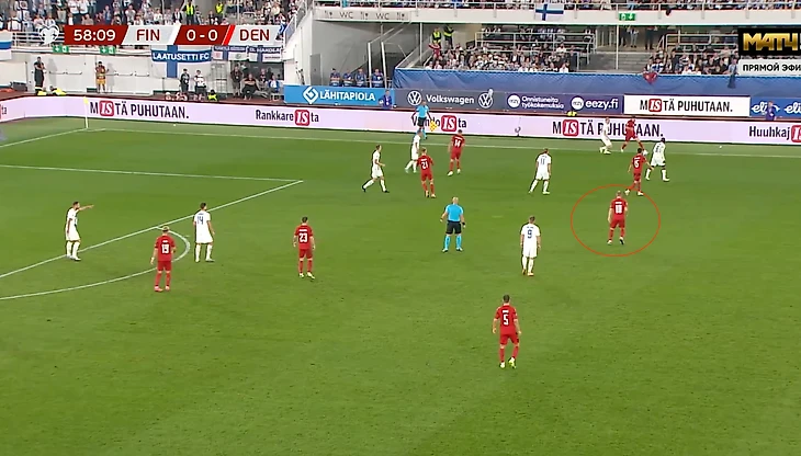 Но чаще он занимает позицию разыгрывающего. Здесь филигранный пас Эриксена абсолютно незаменим, если Дания хочет быть одинаково опасной на обоих флангах. А она хочет.
