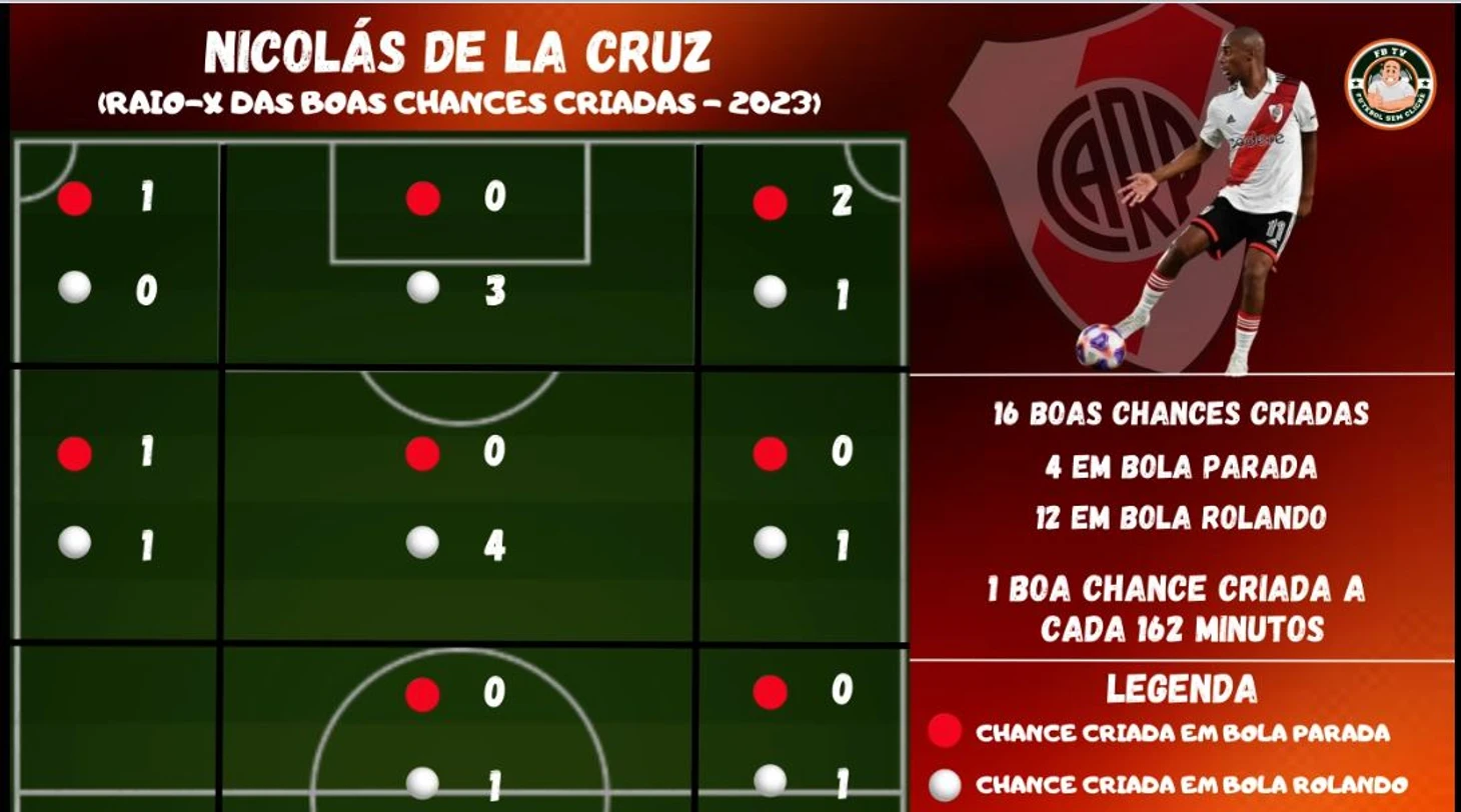 Уругваец чаще всего играет на позиции атакующего полузащитника. Обладая высокой скоростью и техникой, Николас отвечает за продвижение мяча. Де Ла Крус не боится лезть в дриблинг. Также у полузащитника поставленный дальний удар: не раз забивал со штрафного или из-за пределов вратарской.