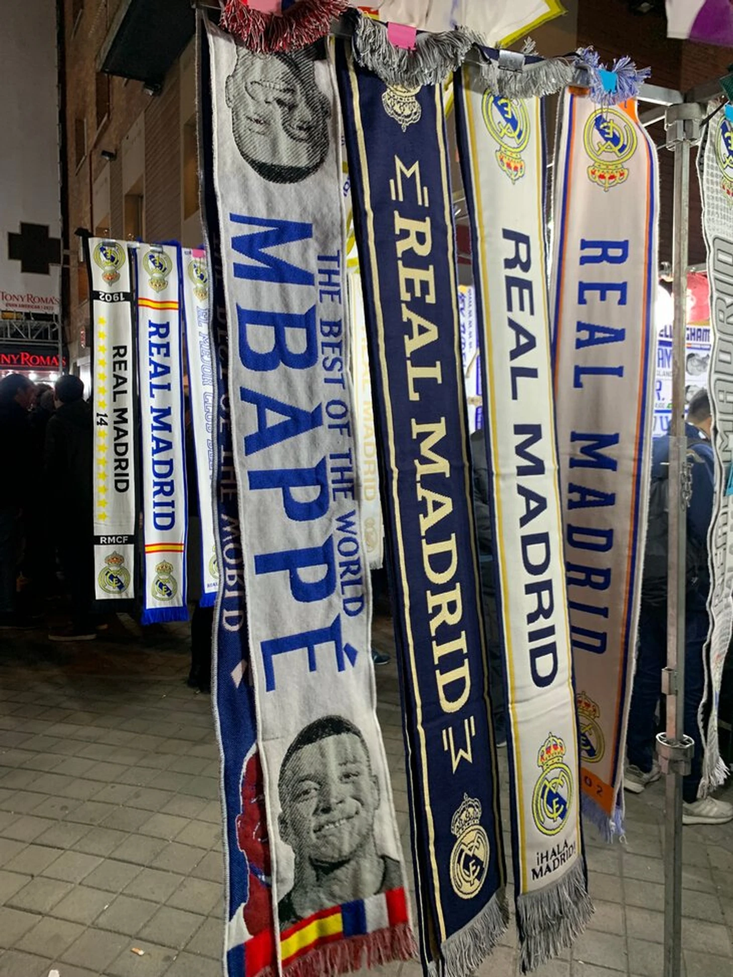 Похоже, в Мадриде заждались Киллиана Мбаппе: хоть он сам и не любит играть в центре нападения, у «Реала» эта позиция требует железного игрока старта. Продавцы неофициального мерча прямо перед «Бернабеу» уже готовы к приезду француза: шарфы с ним висят на видном месте и активно раскупаются. Пока, пожалуй, больше для забавы, но в следующем сезоне они наверняка пригодятся.
