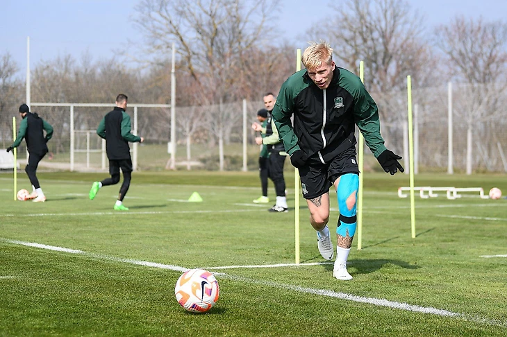Александр Зотов, который получил в предыдущим матче неприятный удар в области голеностопного сустава, также тренировался в общей группе.