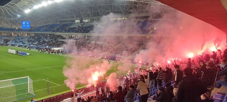 Что можно было отметить на матче, так это внушительное количество болельщиков на гостевой трибуне. Однако, очень тихих в отличие от того же Торпедо Кутаиси. А также пиро от «пиратов» в честь старта сезона.