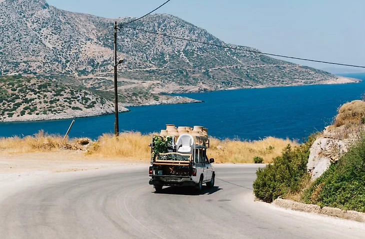 Что касается «плоского листа», Одиссей Элитис имел в виду не только форму острова. Путешествуя из одного конца в другой, вы с удивлением обнаружите, что одна половина острова покрыта пышной растительностью, а другая напоминает поверхность Луны, особенно в летние месяцы, как воображаемая линия, разделяющая остров на два.