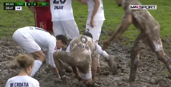 Самый грязный пенальти – в Хорватии для установки мяча пришлось рыть грязь руками