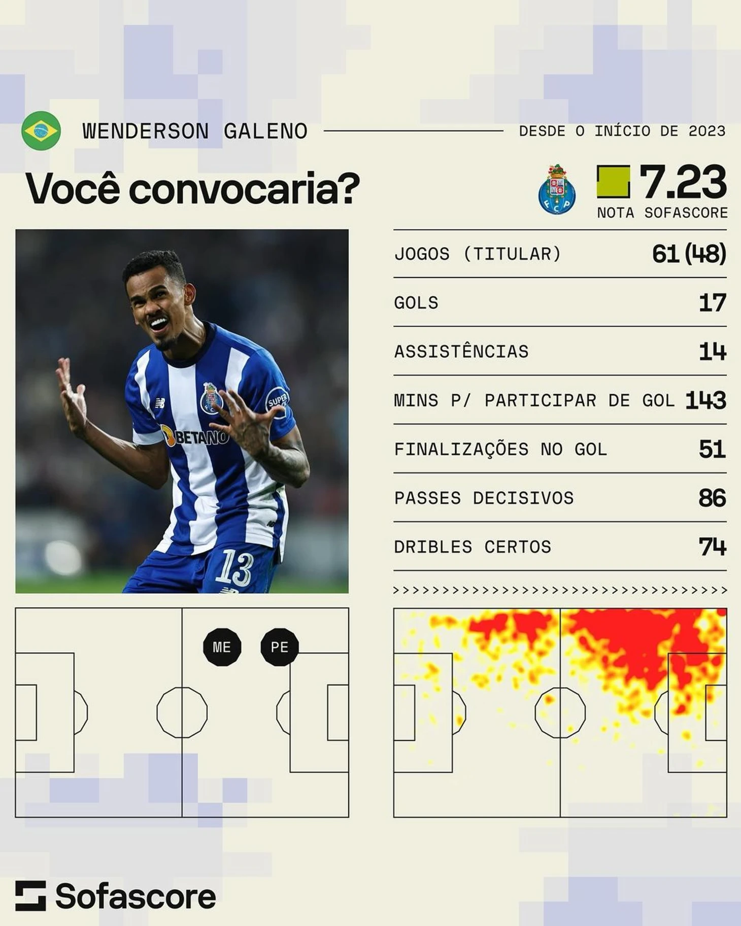 Ну и левый крайний форвард Галено. Давно ходит вокруг да около сборной. Даже муссировались слухи, что выберет Португалию, паспорт которой оформил, но тут помогли травмы конкурентов и Доривал.