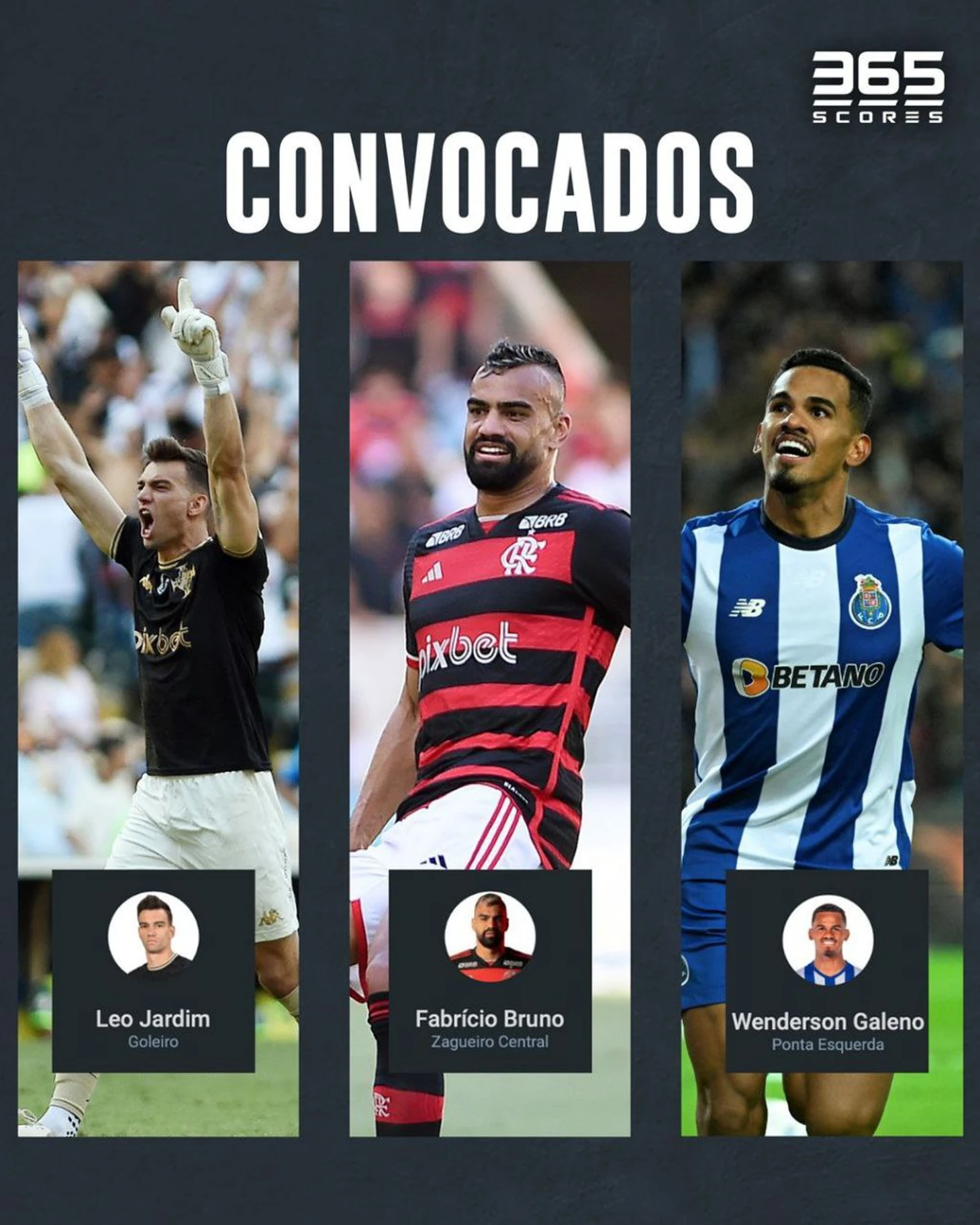 Вместо них вызваны Лео Жардим из «Васко», Фабрисио Бруно из «Фламенго» и Вендерсон Галено из «Порту».