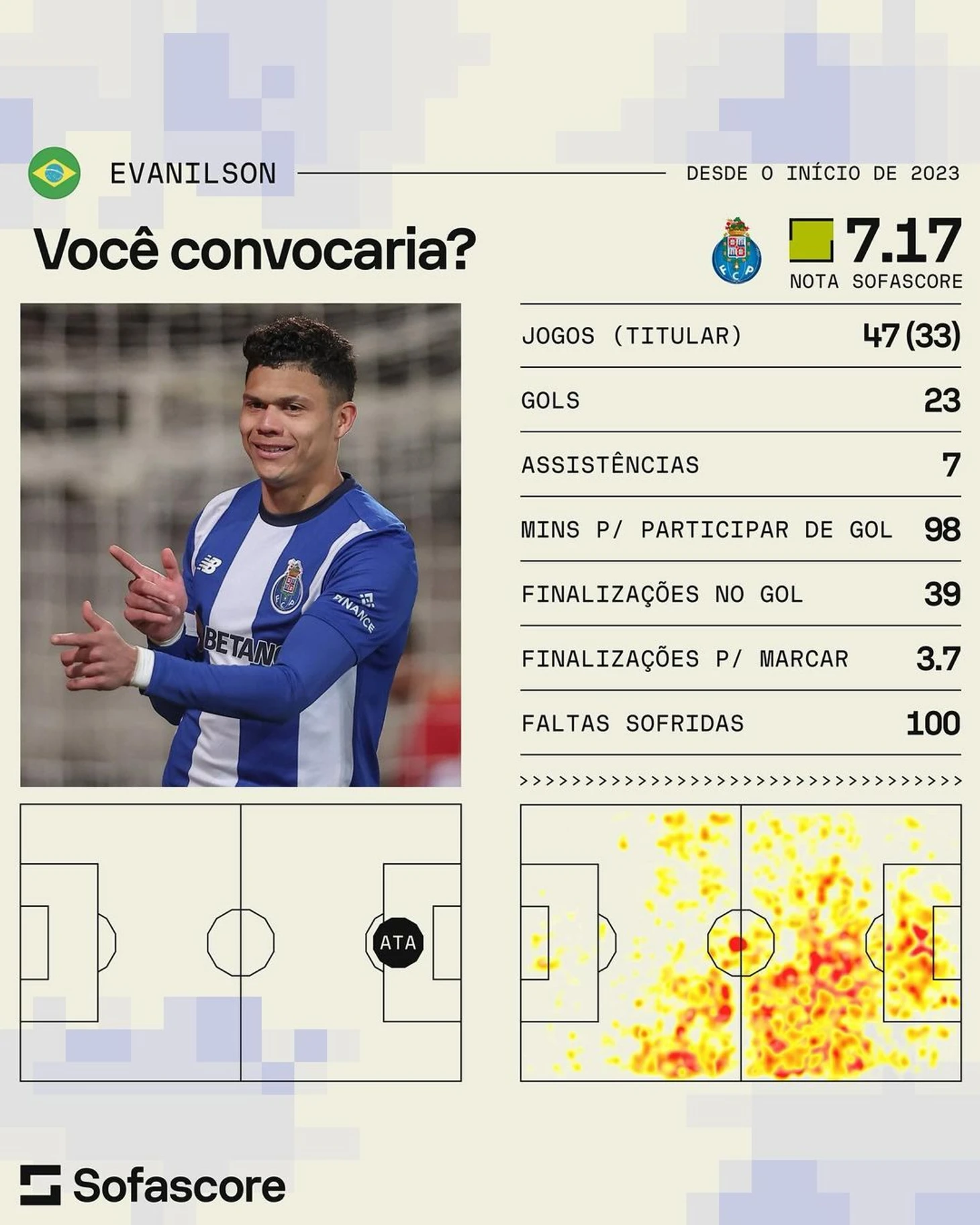 Ну не бог весть какая статистика даже на фоне чемпионата Португалии, но надо сказать парень сейчас на подъеме как и Венделл. Плюс Доривал дает четкий сигнал, что он следит за всеми - главное чтобы уровень игры соответствовал сборной, а лига и возраст - дело второе. Этого например не было при Тите.