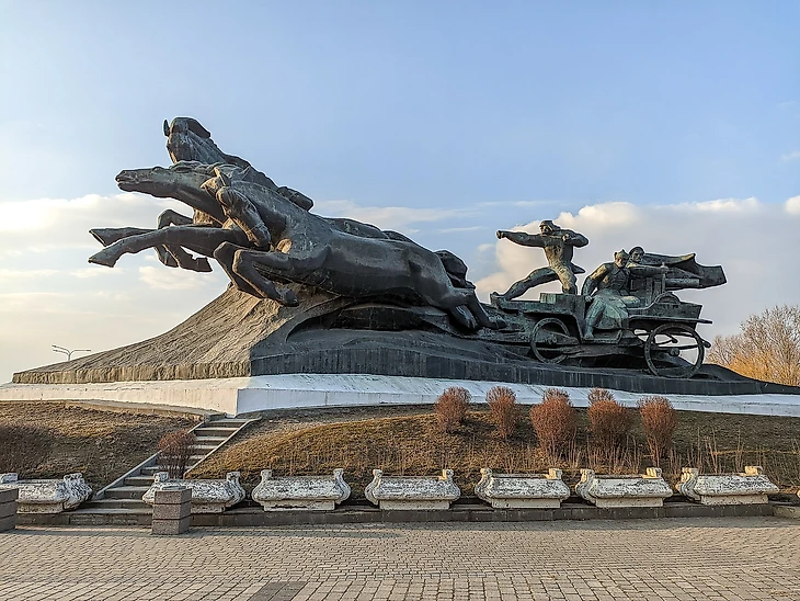 Обратите внимание на копыта коней. У ростовской «Тачанке» все кони зависли в воздухе, у каховской – второй справа конь касается левым копытом земли. А теперь посмотрим на рисунок на футболке: крайний правый конь вытянул ноги вперёд, а его сосед правым копытом упирается в землю. Так и есть: дизайнеры «отзеркалили» изображение первой попавшейся им в «Яндексе» картинки по запросу «Тачанка». Стоит отметить, что скульптуры действительно похожи, но тачанка-тавричанка существенно отличается от тачанки-ростовчанки.