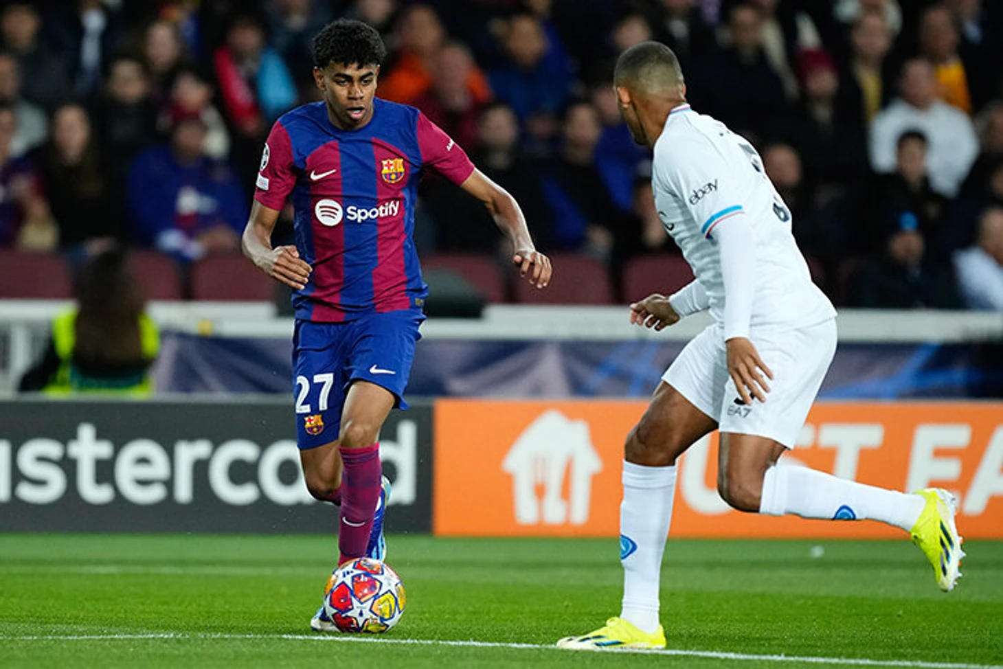 Вы точно знакомы с 16-летним Ламином Ямалем. Для него это уже восьмой матч в турнире, ни у одного сверстника не было больше четырех игр. В первом матче с «Наполи» Ямаль стал самым юным игроком в истории плей-офф ЛЧ – вышел на поле в 16 лет и 223 дня.