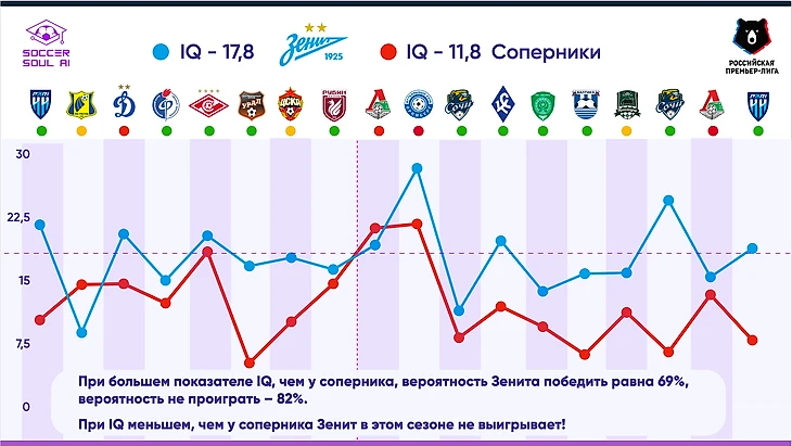 Поэтому те же удачные отборы не показательны, они не влияют на результат - к забитому голу приведут или не приведут последующие игровые действия через АВП. А вот неудачные отборы на результат влияют непосредственно – они позволяют сопернику создавать самому и это видно по его Soccer Soul IQ показателям.