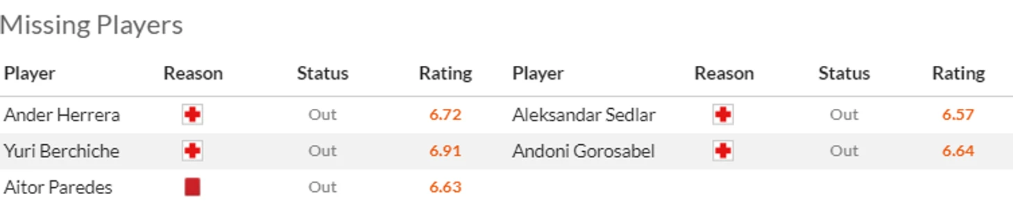 Ну а пока атлеты готовятся сразиться с соседями из Витории и радуются возвращению в строй опытнейшего Андера Эрреры(6,5) и надеются что проблемы Ойана Сансета(7,5) окажутся не серьезными