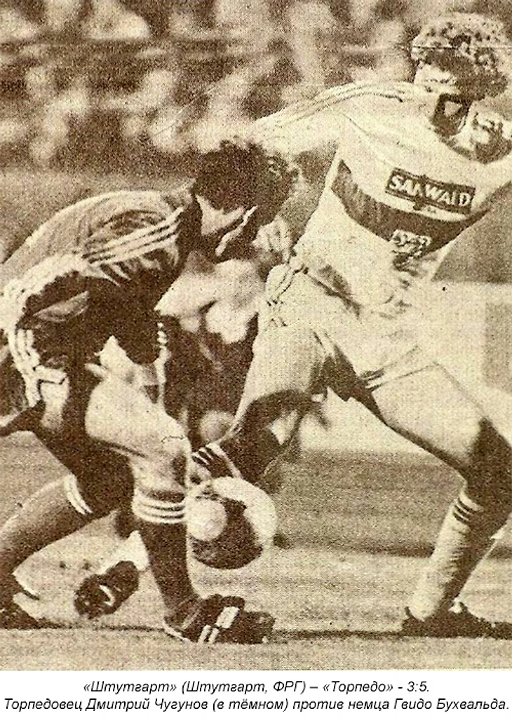 В 1/8 финала торпедовцам выпало зарубиться с одним из сильнейших клубов Германии. «Штутгарт» в сезоне-1983/84 взял золото Бундеслиги, а в 1986-м дошел до финала Кубка Германии, где уступил «Баварии».