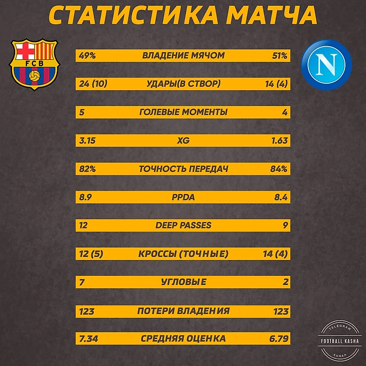 В атаке у каталонцев все, на удивление, было просто: мяч просто отдавали Ямал в первом тайме очень хорошо мучал Руя, совершив не один проход. Контратаки в общем-то строились также – собственно, так и пришло два гола. Вероятно, именно из-за такой простоты игры «Наполи» в итоге превзошел соперника по владению мячом