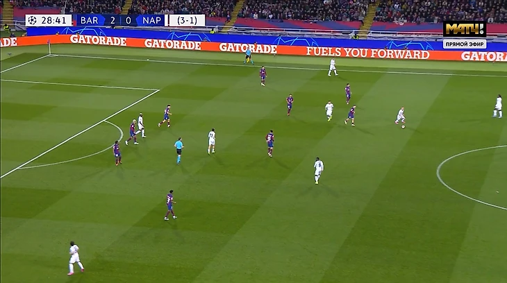 Стоит отметить, что прессинг «Барселоны» работал успешно: в итоге хозяева совершили три отбора в атакующей трети, а ещё семь – в нейтральной. Для сравнения, у «Наполи» - девять и один соответственно