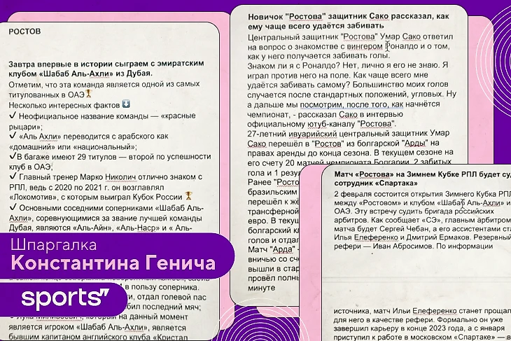 Сверху обычно пишу цитаты какого-нибудь спортивного директора перед матчем. Или что тренер сказал. Статистика, какие-то прикольные факты, что-то просто заслуживающее внимания. В общем, в моем случае шпаргалки довольно стандартны и понятны.