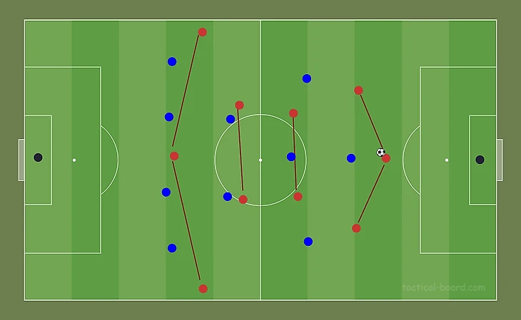 Козлов и Алекс Фернандес заходили с позиции вингеров на позиции инсайдов, а Роберто Фернандес и Ковалёв поднимались и играли высоких латералей.