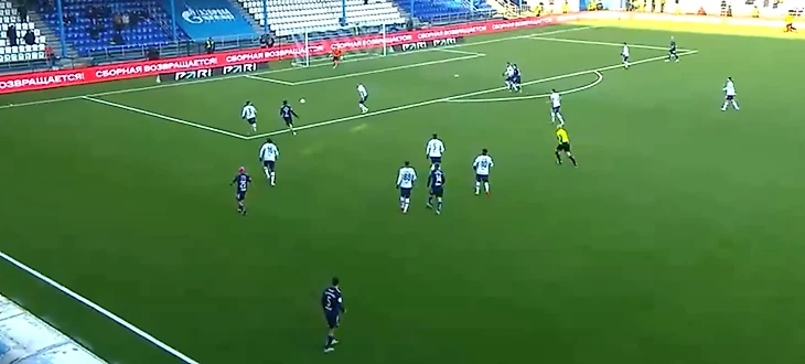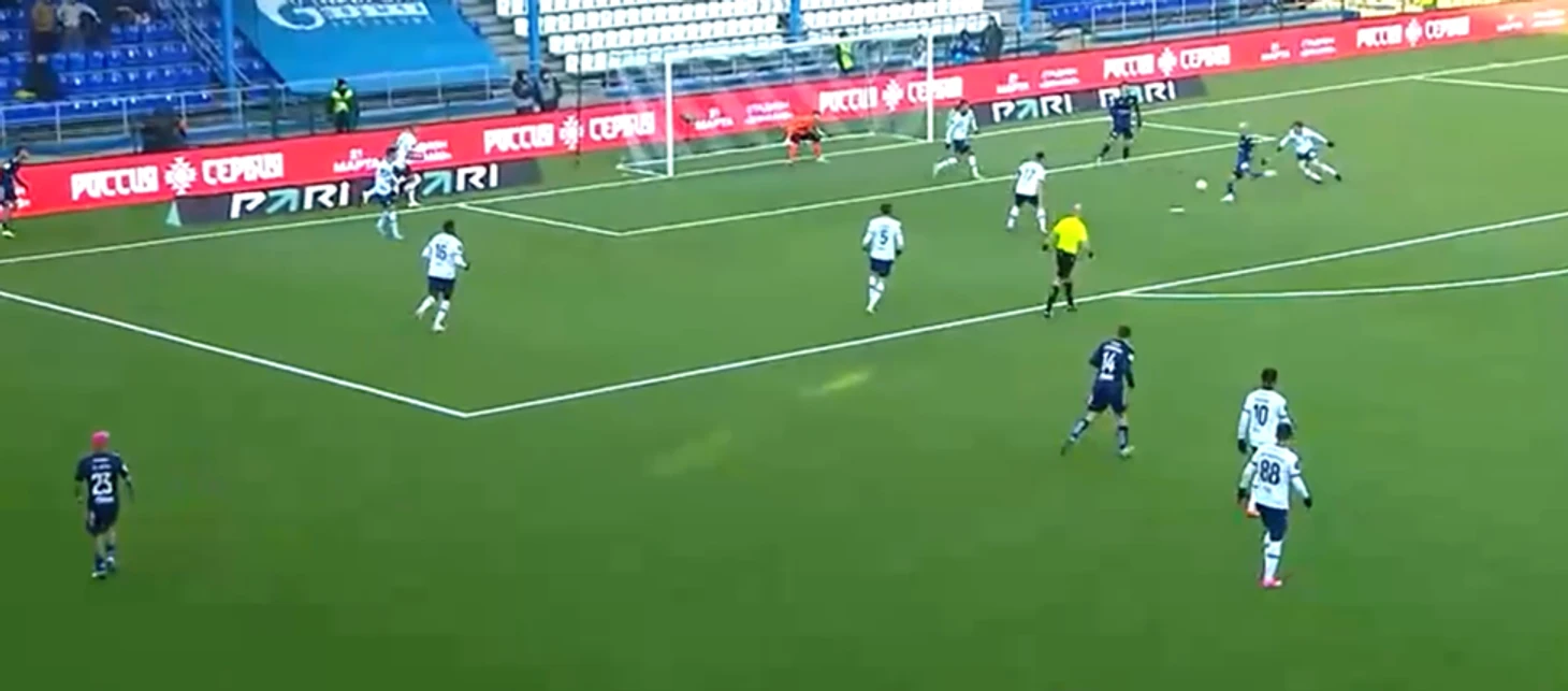 Фамейе вышел 1 на 1, ударил во вратаря. На добивании первым оказался Козлов, со второго раза он всё-таки добил мяч в ворота, но… изначально Фамейе заполз в оффсайд.