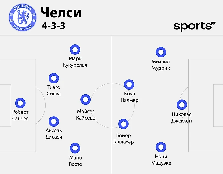 Главная загадка: как заменить Энцо Фернандеса в это матче? Аргентинец отбывает дисквалификацию, а профильных центральных полузащитников в «Челси» по сути нет (они все травмированы). Палмер может занять место в центре, как уже бывало. Может быть Почеттино даст шанс Карни Чуквуэмеке. В первом случае в тройку нападения вернутся Нони Мадуэке и Михаил Мудрик, во втором только Миша.