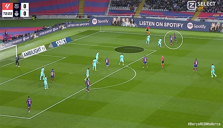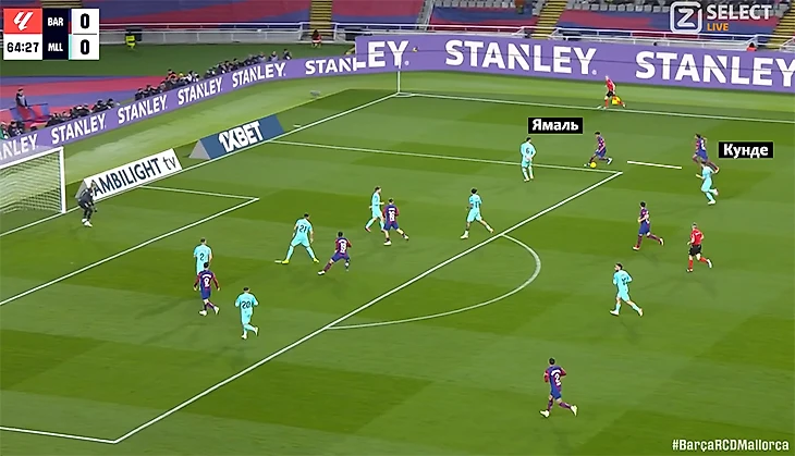 Ямаль не противится черновой работе, помогает Кунде: например, в этой же игре с «Мальоркой» возвращался за латералем Тони Лато до своей штрафной, пока Жюль закрывал форварда Ларина.