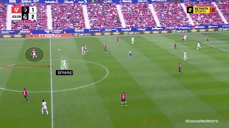 Третий мяч – бразилец блокирует защитника «Осасуны» и не дает ему подстраховать партнеров. На этот раз воспользовался Браим: