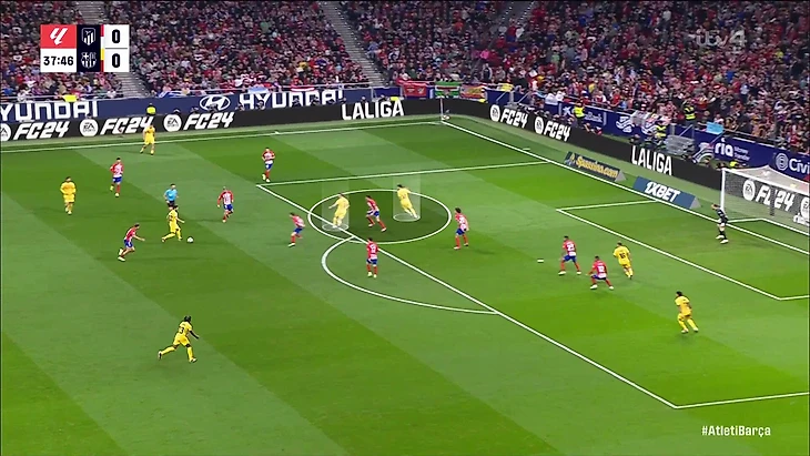 В общем, план Симеоне имел смысл на чужой трети. Пока удавалось держать мяч и соперника там, все было неплохо – в первые полчаса у «Барсы» было 0 ударов в сторону ворот. А вот в защите были уязвимые в персональных дуэлях звенья.