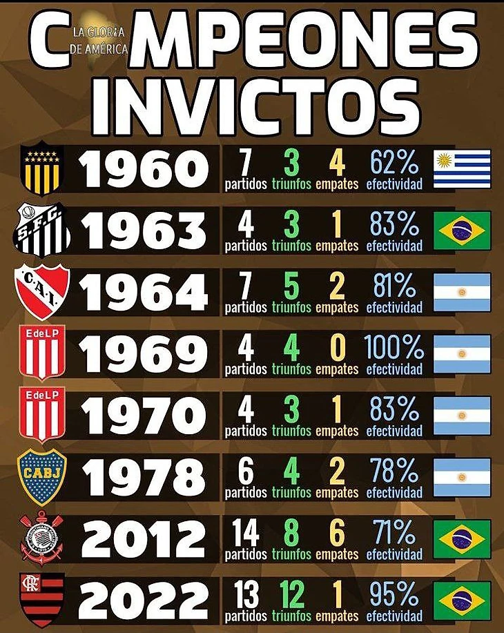 Чемпионские беспроигрышные кампании в истории Либертадорес
