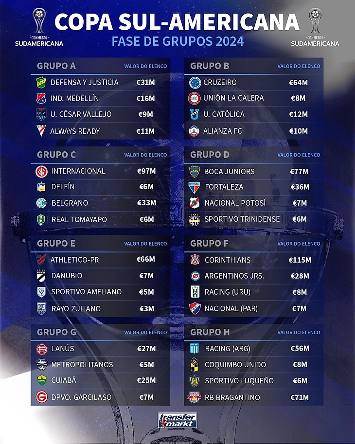 У Палмейрас самая жесткая группа. Сан-Лоренсо это Сан-Лоренсо, в Аргентине никогда не просто. А Инд. Дель Валье — очень приличная, крепенькая командочка, уже “возившая” грандов в Либертадорес и Судамерикане. У Ат. Минейро тоже группа не подарок. А вот Сан-Паулу должен решать с выходом без проблем.