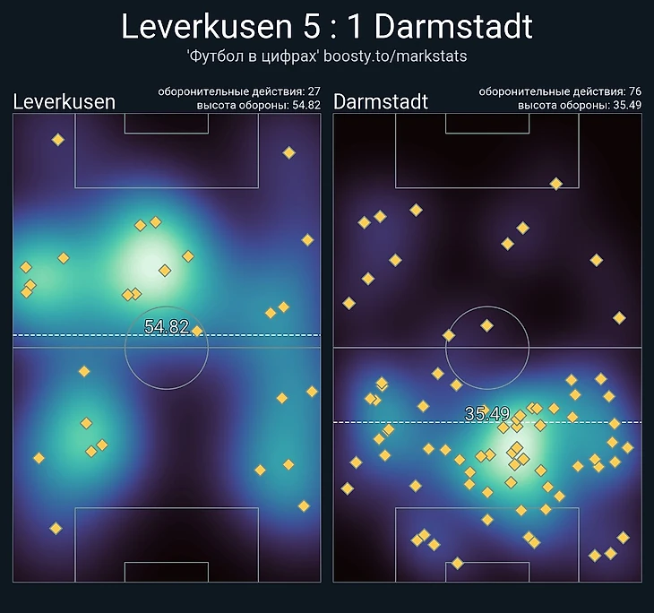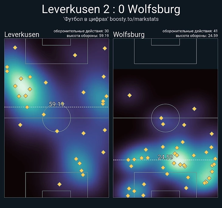 На протяжении сезона «Байер 04» старается держать эту планку. Стоит отметить, что показатель высоты обороны никогда не опускался ниже 30.