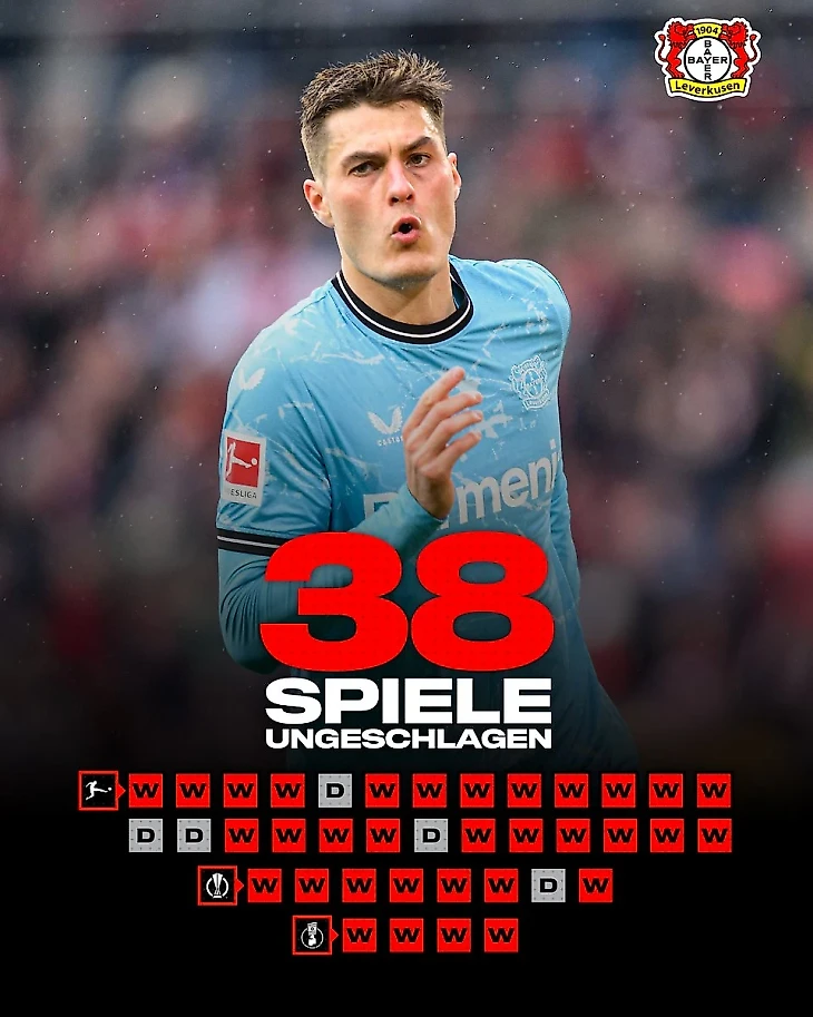 Беспроигрышная серия «Байера 04» на данный момент насчитывает 38 матчей во всех турнирах! Ни один другой клуб Бундеслиги никогда не добивался такого результата.
