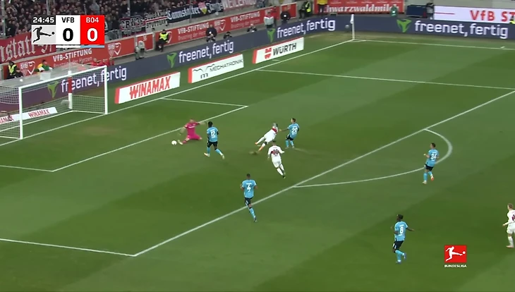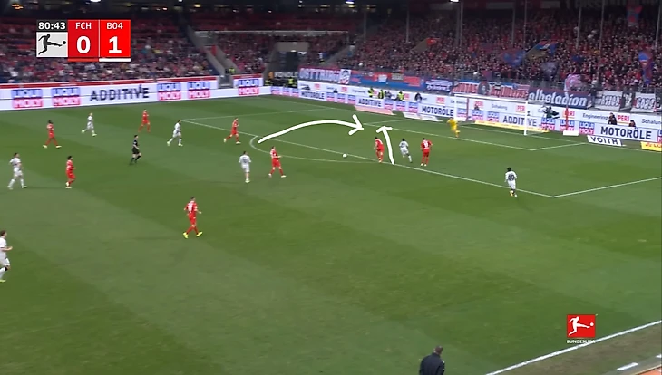 Также Бонифас, как и Гирасси из «Штутгарта», отлично чувствует момент, когда нужно быть на шаг впереди соперника и открыться под проникающую передачу. Яркий пример из матча с «Бохумом».