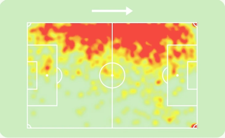 Гримальдо делит с Сане из «Баварии» первую строчку лучшего ассистента Бундеслиги этого сезона (у обоих по 11 голевых передач). Также он мастерски исполняет стандарты (обратите внимание на красный цвет на угловых флажках на тепловой карте) и штрафные удары. Также Гримальдо пробежал 302 км и находится на втором месте в Бундеслиге по пройденной дистанции (первую строчку занимает Гранит Джака с 305 км). На двоих у Фримпонга и Гримальдо 512 км дистанции в этом сезоне.