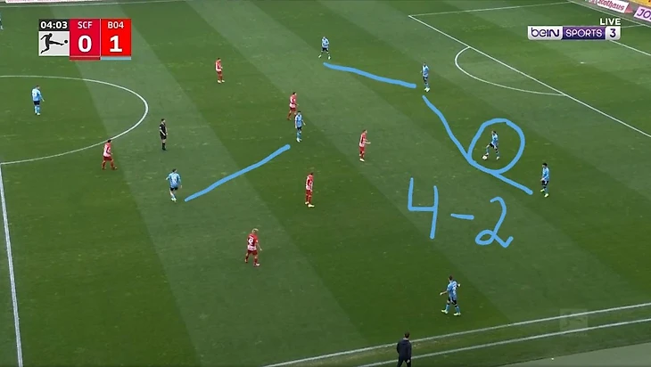 В 26-м туре Бундеслиги с «Фрайбургом» была показана другая структура билд-апа.
