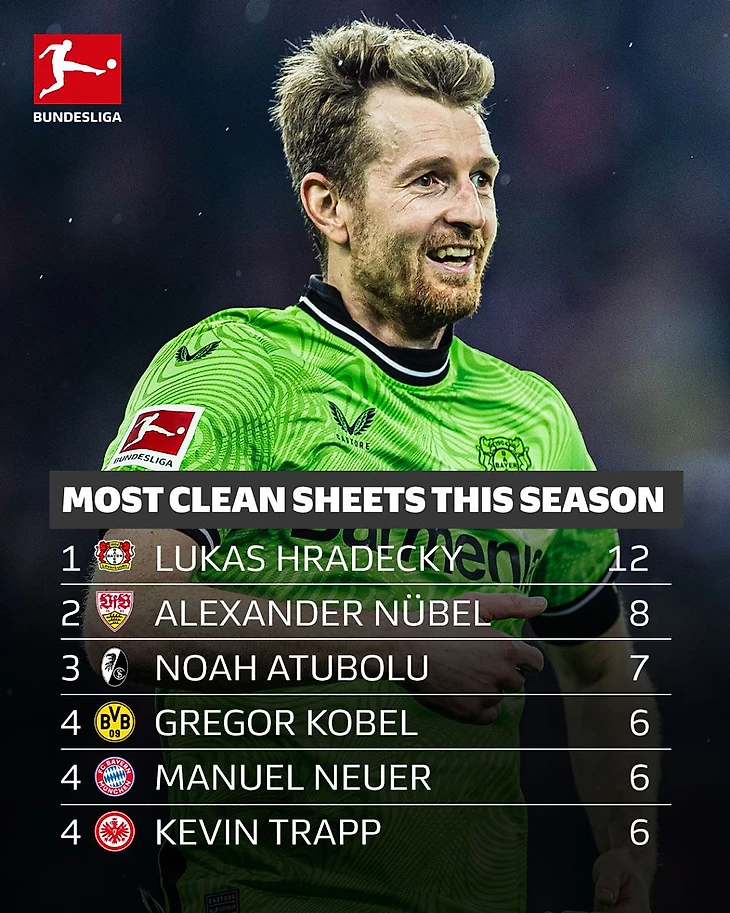 Лукаш Градецкий – лидер Бундеслиги по клиншитам. У него 12 сухих матчей. Рефлексы, выходы из ворот – его первоклассные качества. В этом сезоне он имеет 2,6(79%) сейвов за игру. Очень успешен на выходах 0,5(100%).