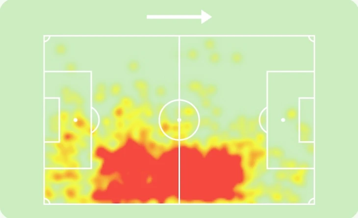 Гримальдо уходит со своей позиции на левом фланге ближе к центру атаки, насыщая эту зону, стягивая на себя соперников для освобождения пространства для игроков атаки.